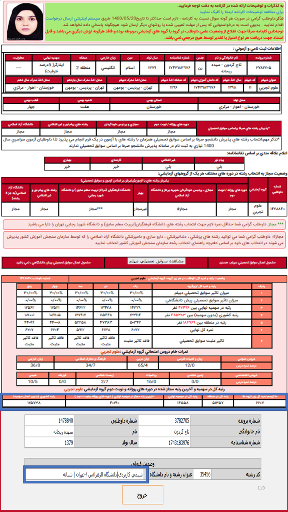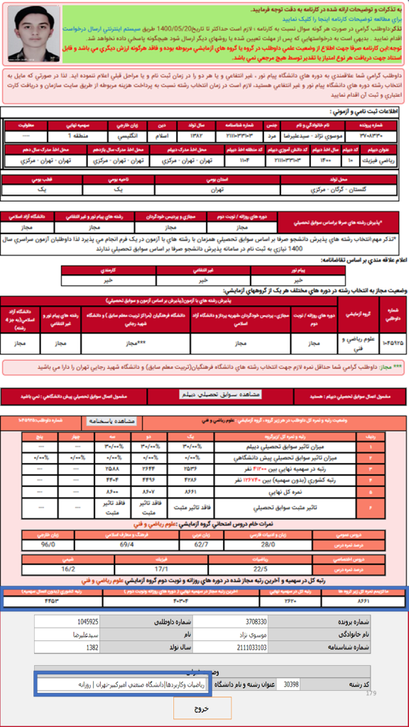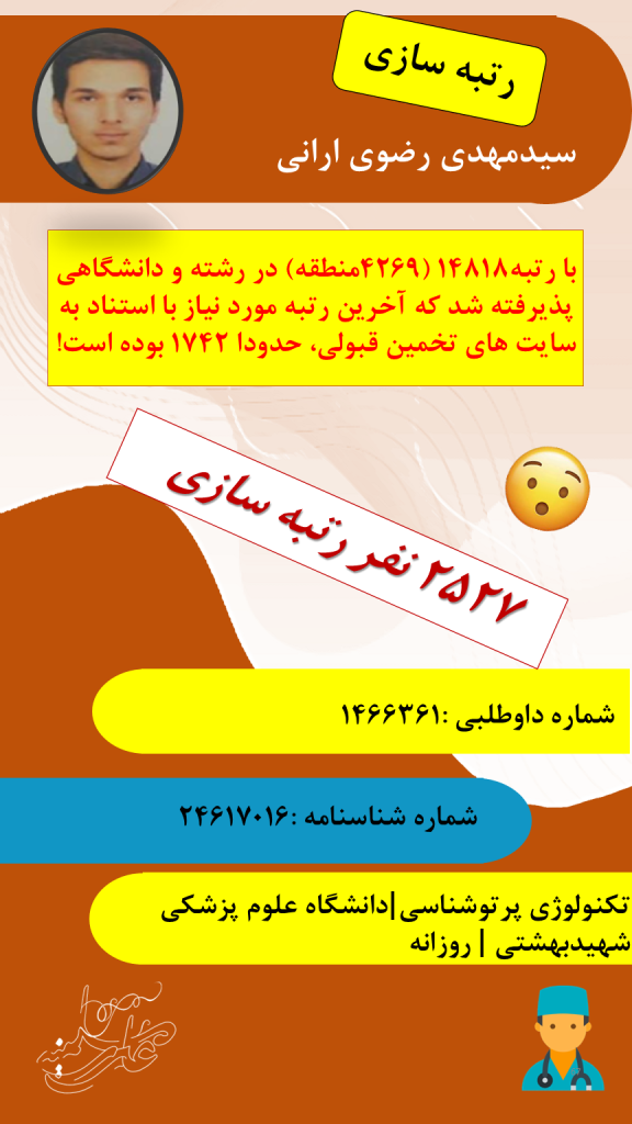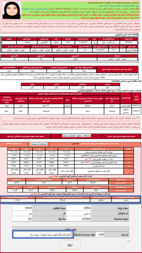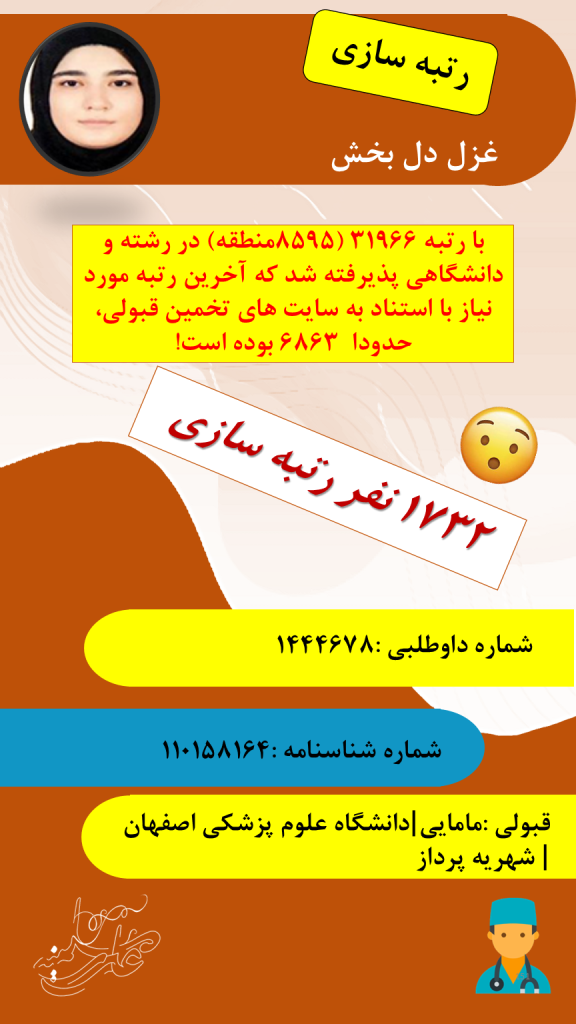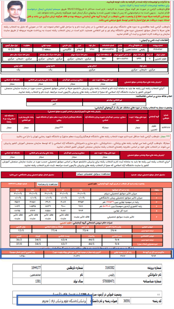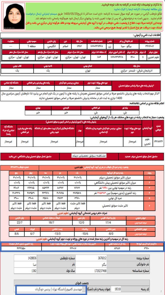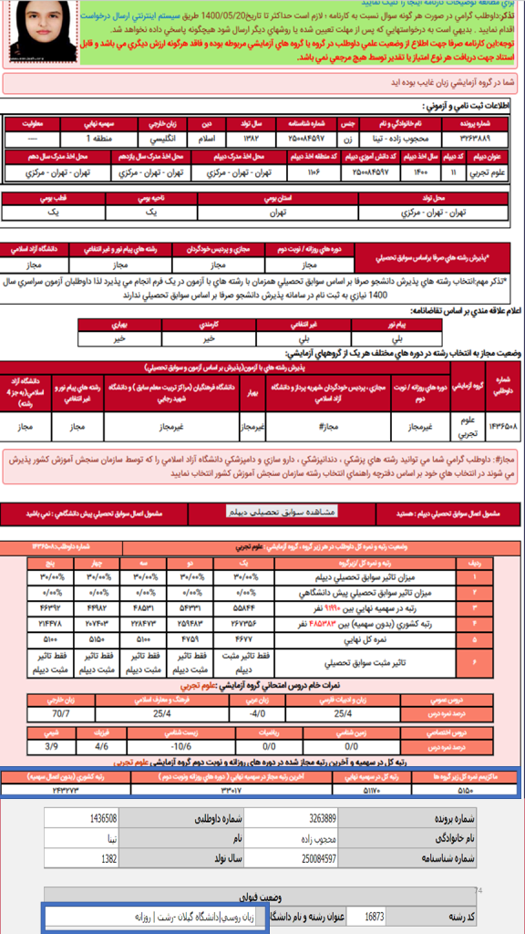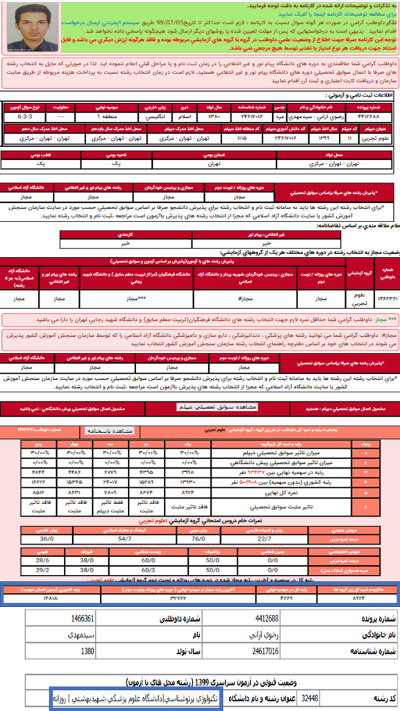 نتایج تعدادی از داوطلبان خوش شانس که انتخاب رشته ایشان توسط استاد مسلمینی و با متد رتبه سازی انجام پذیرفت(کارنامه قابل استعلام از سایت سازمان سنجش)
