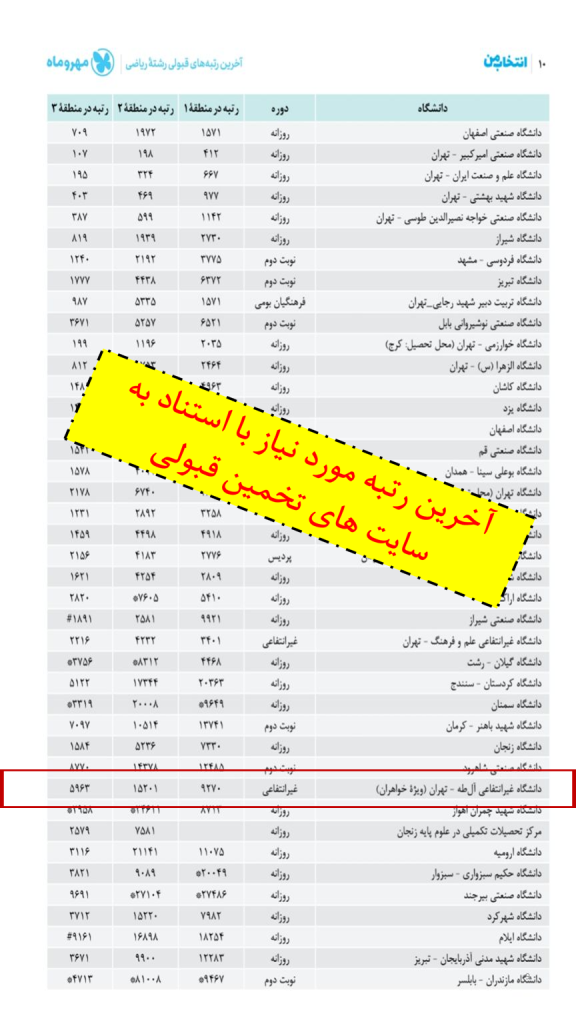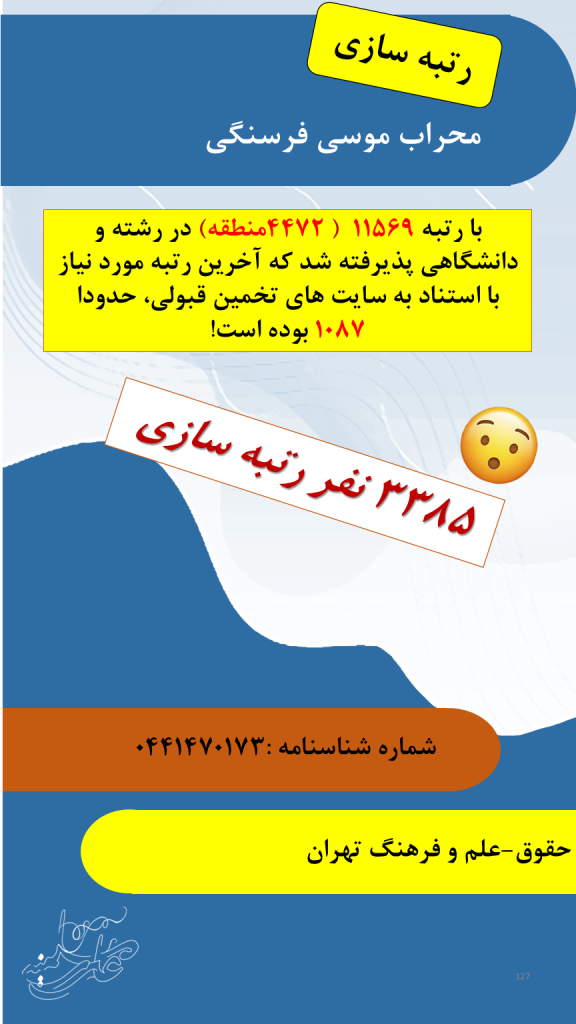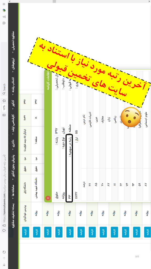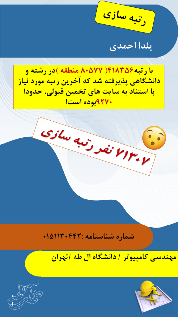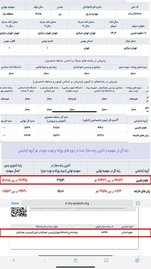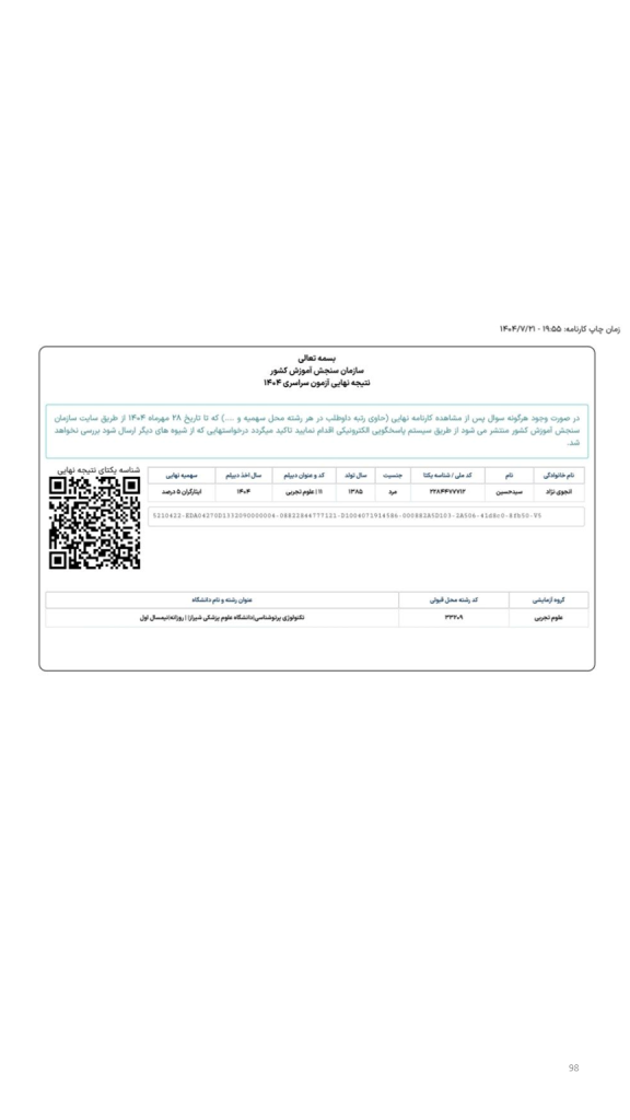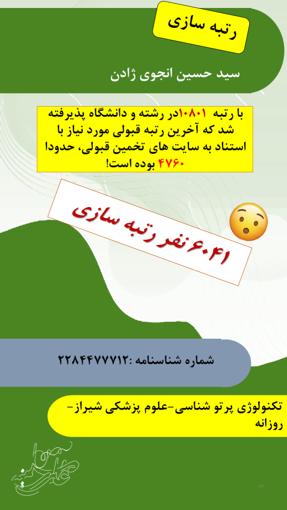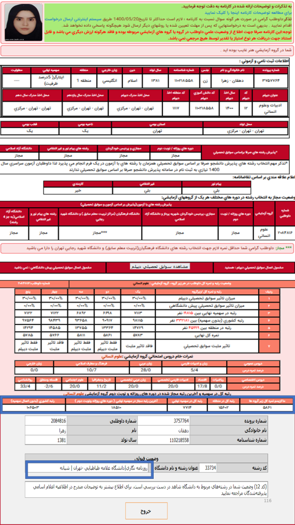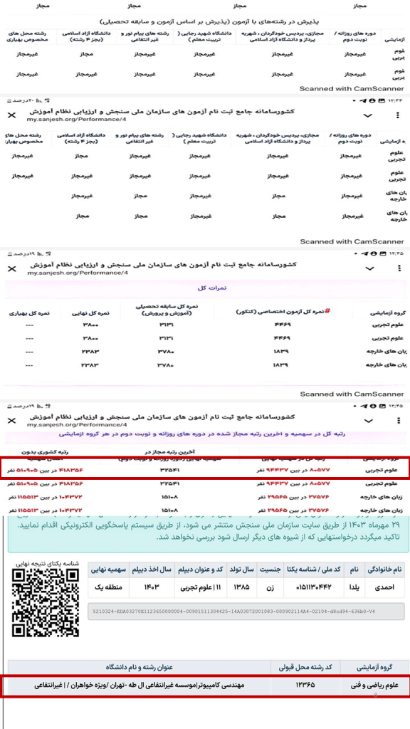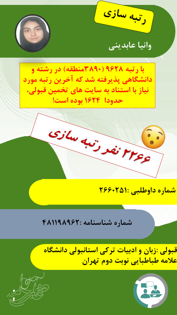 نتایج تعدادی از داوطلبان خوش شانس که انتخاب رشته ایشان توسط استاد مسلمینی و با متد رتبه سازی انجام پذیرفت(کارنامه قابل استعلام از سایت سازمان سنجش)
